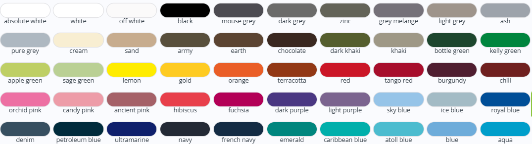 Barevné varianty: šedobílá, krémová, šedý melanž, výběr z barev (logo je v základu bílé nebo černé podle zvolené barvy produktu) *